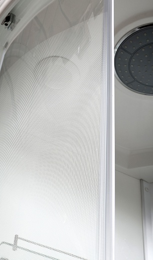 - Акриловый поддон со съемным экраном выстой 20 см, с дренажными отводами, усиленный оцинкованным металлическим каркасом.