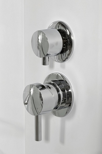 - Латунный смеситель с керамическими картриджами и резьбовыми соединениями.