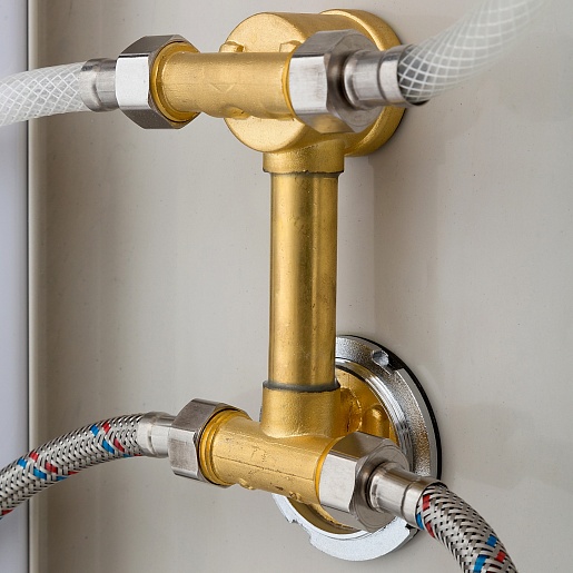 - Латунный смеситель с керамическими картриджами и резьбовыми соединениями.