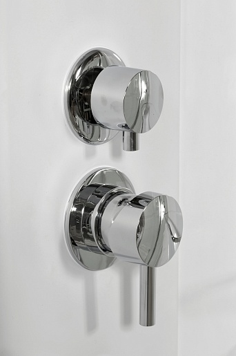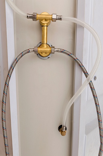 - Латунный смеситель с керамическими картриджами и резьбовыми соединениями.