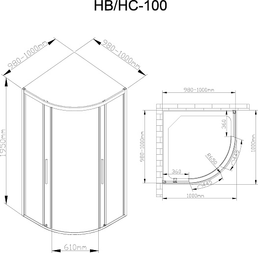 Душевой уголок Deto HC 100 Chrome - арт. HC100.
