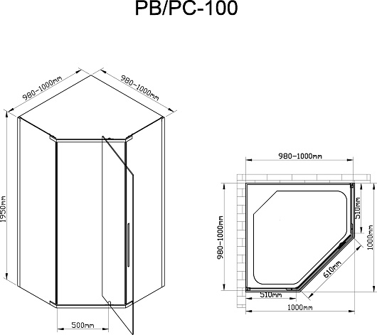 Душевой уголок Deto PC 100 Chrome - арт. PC100.