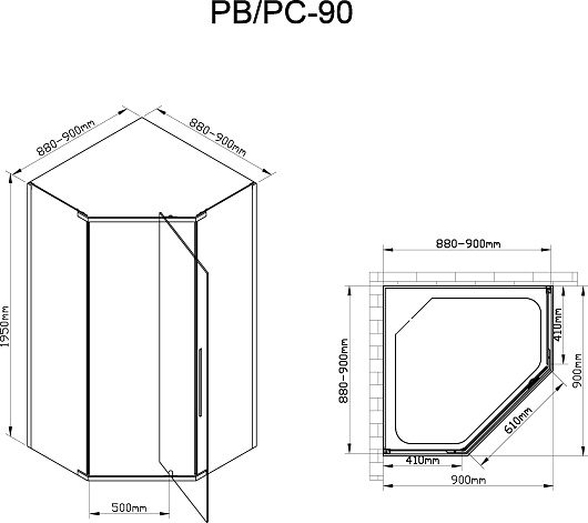 Душевой уголок Deto PC 90 Chrome - арт. PC90.