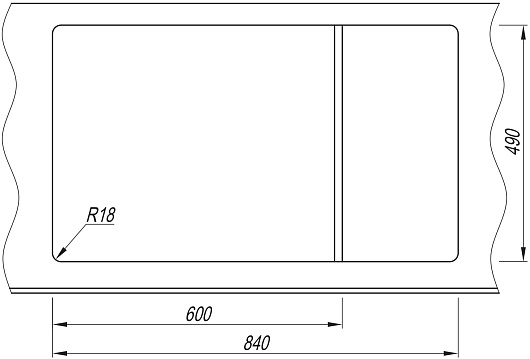 - Установочный проём: 840x490 мм.