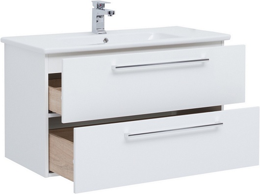 - тумба под раковину GIO 100 арт. 77.0105W: выдвижные фасады, встроенный органайзер в верхнем ящике, доводчики Hettich