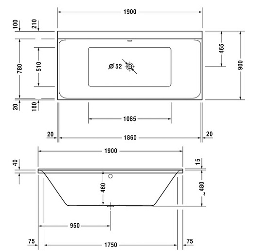 Duravit Акриловая ванна "P3 Comforts 700378000000000" 190х90