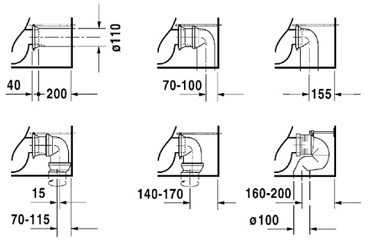 - выпуск вертикальный (в пол), горизонтальный (в стену)