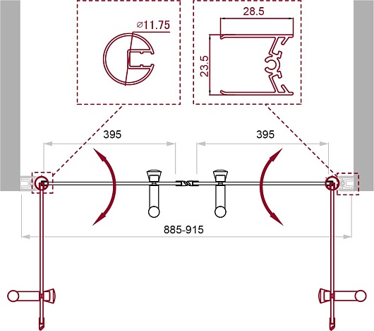 - Стекло 5 мм. C (прозрачное), P (матовое).