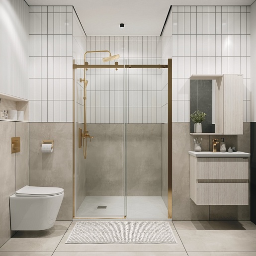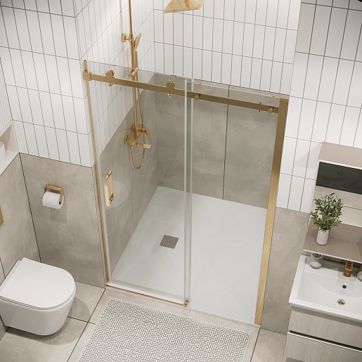 Душевая дверь в нишу Grossman Classic 100x195 профиль золото сатин стекло прозрачное - арт. 100.K33.04.100.32.00.