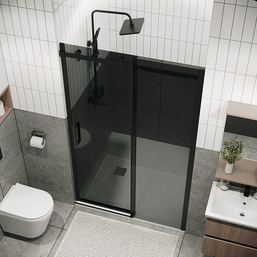 Душевая дверь в нишу Grossman Classic 110x195 профиль черный матовый стекло тонированное - арт. 100.K33.04.110.21.10.