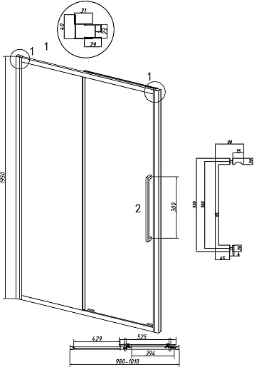 - Дверь раздвижная: одна неподвижная и одна сдвижная створки.