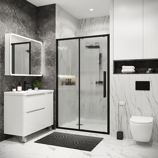 Душевая дверь в нишу Grossman Cosmo 120x195 профиль черный матовый стекло шиншилла - арт. 100.K33.02.120.21.02.