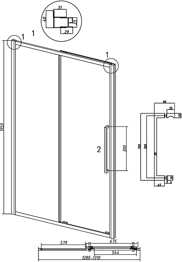 - Дверь раздвижная: одна неподвижная и одна сдвижная створки.