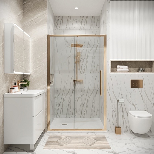 Душевая дверь в нишу Grossman Cosmo 130x195 профиль золото сатин стекло прозрачное - арт. 100.K33.02.130.32.00.
