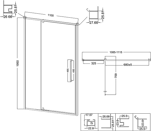 - Регулируемый стеновой профиль: 108.5-111.5 см.