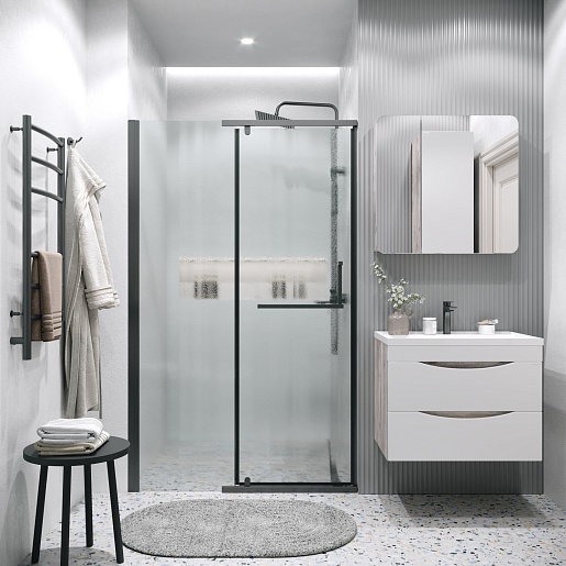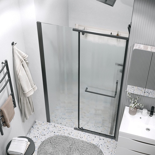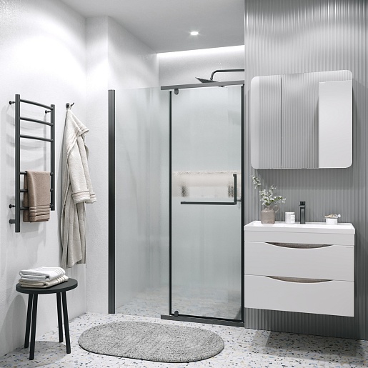 Душевая дверь в нишу Grossman Pragma 100x195 профиль черный матовый стекло шиншилла - арт. 100.K33.03.100.21.02.
