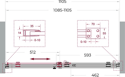 - Регулируемая ширина: от 108.5 до 110.5 см.