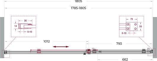 - Регулируемая ширина: от 178.5 до 180.5 см.