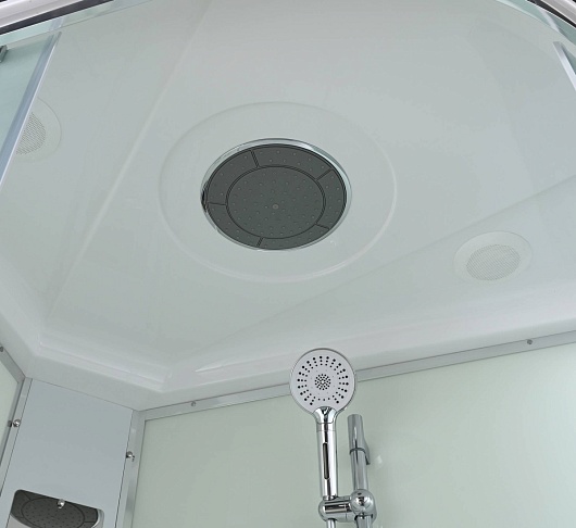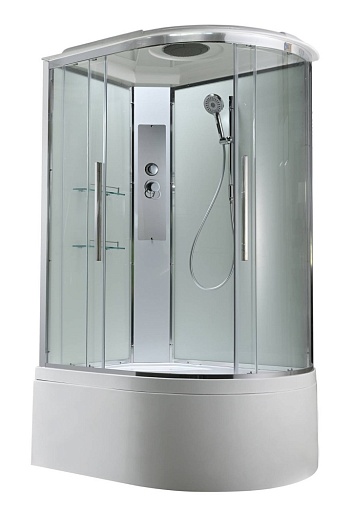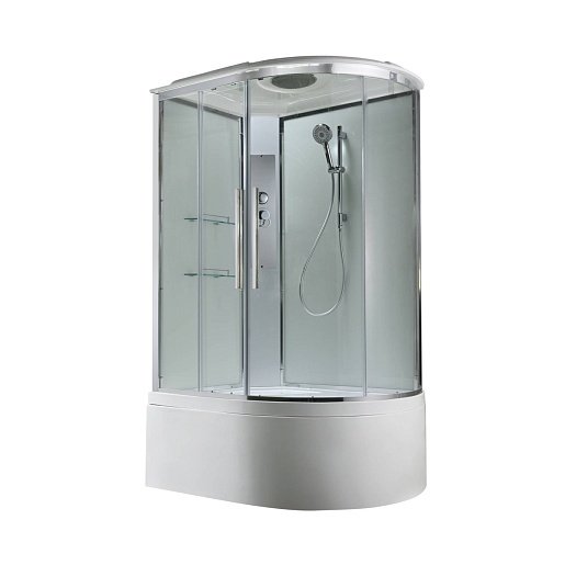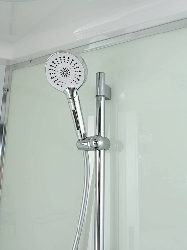 - В комплекте: душевая штанга, две полочки, тропический (верхний) душ, арома-лейка с витамином С (картридж съемный), полимерная вставка в поддон(имитация дерева), сифон, ручки дверей из нержавейки, двойные ролики.