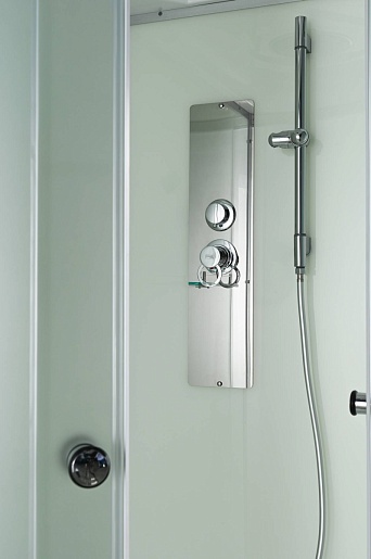 - Сборка без силикона (увеличивает срок службы), внутренняя сборка, смеситель резьбовой (без хомутов), съемный экран поддона, цвет профиля матовый хром.
