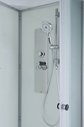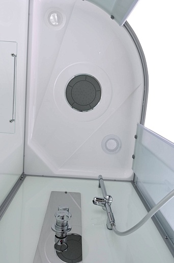 - Сборка без силикона (увеличивает срок службы), внутренняя сборка, смеситель резьбовой (без хомутов), съемный экран поддона, цвет профиля матовый хром.