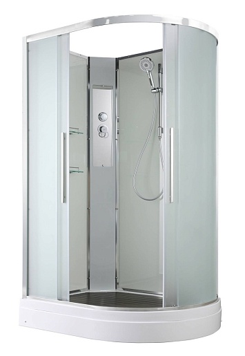- В комплекте: душевая штанга, две полочки, арома-лейка с витамином С (картридж съемный), полимерная вставка в поддон(имитация дерева), сифон, ручки дверей из нержавейки, двойные ролики.