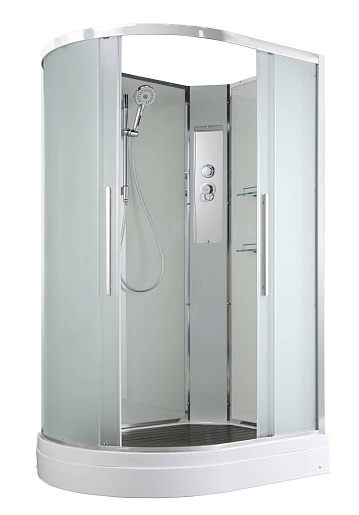 - В комплекте: душевая штанга, две полочки, арома-лейка с витамином С (картридж съемный), полимерная вставка в поддон(имитация дерева), сифон, ручки дверей из нержавейки, двойные ролики.