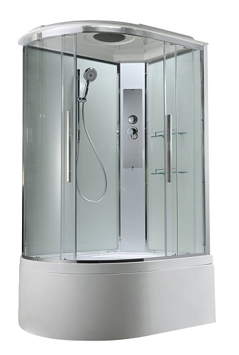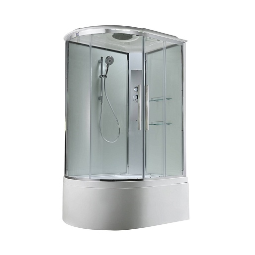 - В комплекте: душевая штанга, две полочки, тропический (верхний) душ, арома-лейка с витамином С (картридж съемный), полимерная вставка в поддон(имитация дерева), сифон, ручки дверей из нержавейки, двойные ролики.