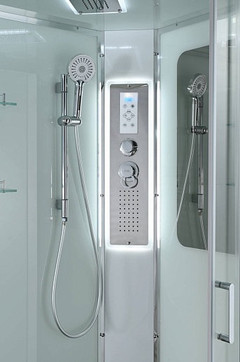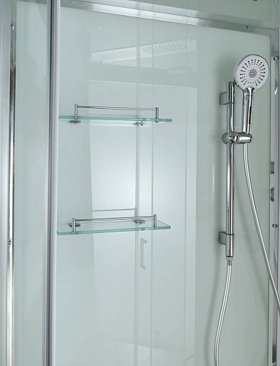 - Душевая штанга(позволяет регулировать по высоте ручную лейку), ручная арома-лейка с витамином С (картридж в комплекте, есть возможность замены или удаления картриджа), полочки(из стекла, с ограничителем), сифон с гидрозатвором.