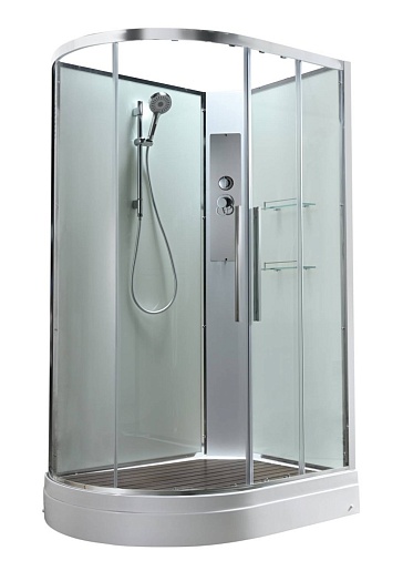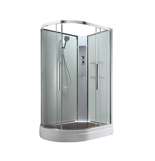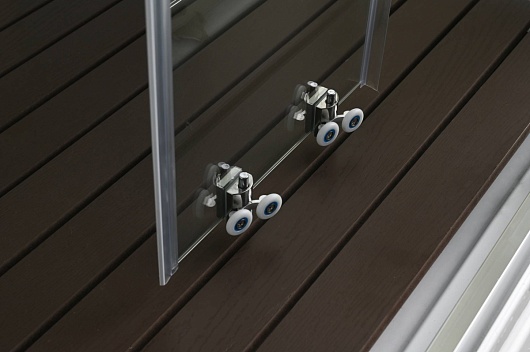 - В комплекте: душевая штанга, две полочки, арома-лейка с витамином С (картридж съемный), полимерная вставка в поддон(имитация дерева), сифон, ручки дверей из нержавейки, двойные ролики.