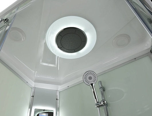 - В комплекте: душевая штанга, две полочки, тропический (верхний) душ, арома-лейка с витамином С (картридж съемный), полимерная вставка в поддон(имитация дерева), сифон, ручки дверей из нержавейки, двойные ролики, пульт сенсорный (Блютуз, LED подсветка, радио, вытяжка), гидромассаж спины.