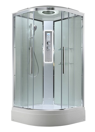 - В комплекте: душевая штанга, две полочки, тропический (верхний) душ, арома-лейка с витамином С (картридж съемный), полимерная вставка в поддон(имитация дерева), сифон, ручки дверей из нержавейки, двойные ролики, пульт сенсорный (Блютуз, LED подсветка, радио, вытяжка), гидромассаж спины.