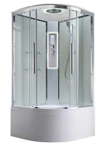 - В комплекте: душевая штанга, две полочки, тропический (верхний) душ, арома-лейка с витамином С (картридж съемный), полимерная вставка в поддон(имитация дерева), сифон, ручки дверей из нержавейки, двойные ролики, пульт сенсорный (Блютуз, LED подсветка, радио, вытяжка), гидромассаж спины.