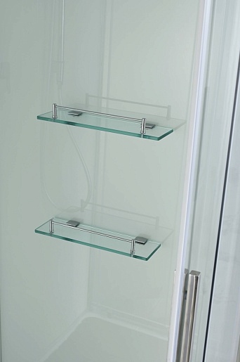 - Душевая штанга(позволяет регулировать по высоте ручную лейку), ручная арома-лейка с витамином С (картридж в комплекте, есть возможность замены или удаления картриджа), полочки(из стекла, с ограничителем), сифон с гидрозатвором.