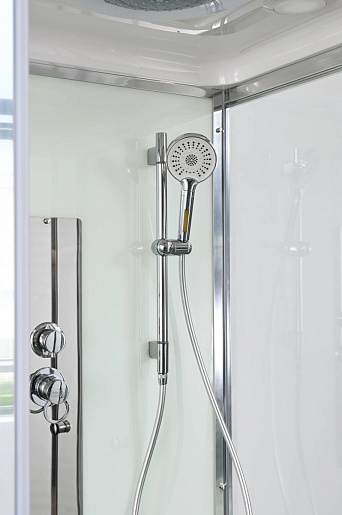 - Душевая штанга(позволяет регулировать по высоте ручную лейку), ручная арома-лейка с витамином С (картридж в комплекте, есть возможность замены или удаления картриджа), полочки(из стекла, с ограничителем), сифон с гидрозатвором.