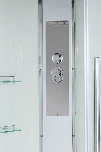 - Душевая штанга(позволяет регулировать по высоте ручную лейку), ручная арома-лейка с витамином С (картридж в комплекте,есть возможность замены или удаления картриджа), полочки(из стекла, с ограничителем), сифон с гидрозатвором.