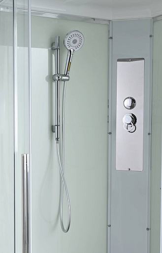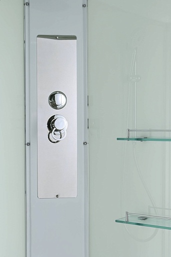 - Душевая штанга(позволяет регулировать по высоте ручную лейку), ручная арома-лейка с витамином С (картридж в комплекте, есть возможность замены или удаления картриджа), полочки(из стекла, с ограничителем), сифон с гидрозатвором.