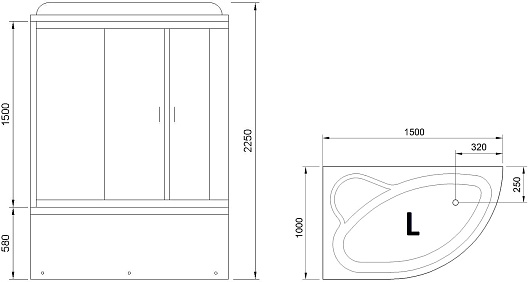 - Размер (ШxГxВ): 1500 x 1000 x 2250 мм.