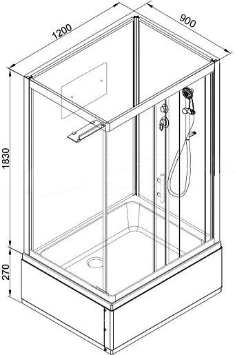 DTO Душевая кабина D229 120x90 без крыши