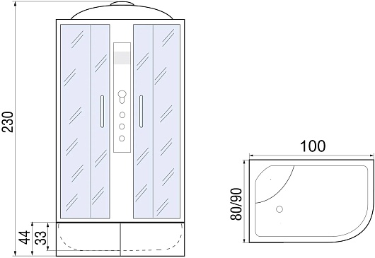 - Высота поддона: 44 см.