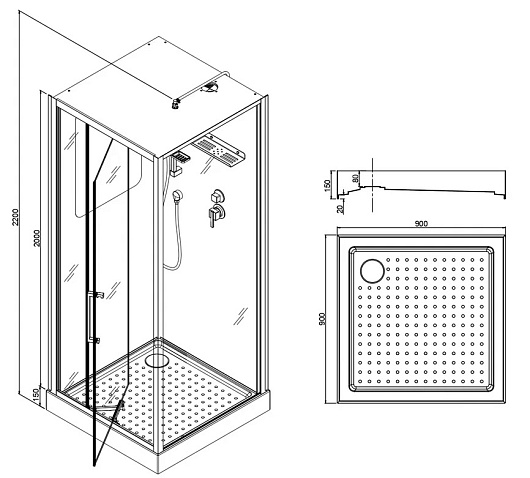 - Низкий поддон белого цвета (125 мм) с водонепроницаемым бортиком (20 мм).