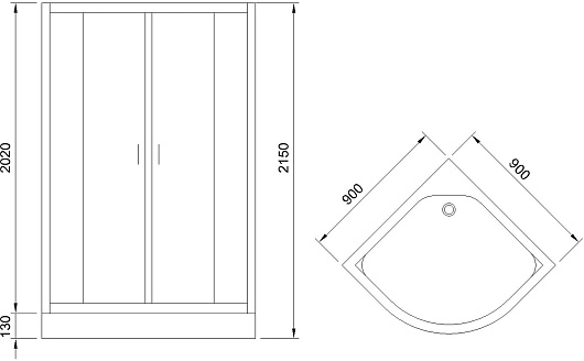 - Размер (ШxГxВ): 900 x 900 x 2150 мм.