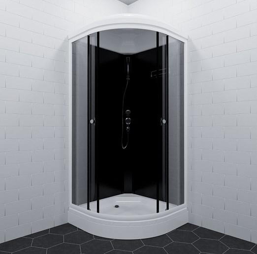 В комплекте: сифон, душевой набор с лейкой на гибком шланге и верхним душем, полочка, поддон.