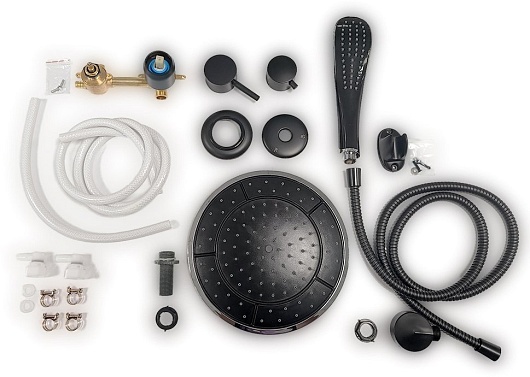 В комплекте: сифон, душевой набор с лейкой на гибком шланге и верхним душем, поддон.