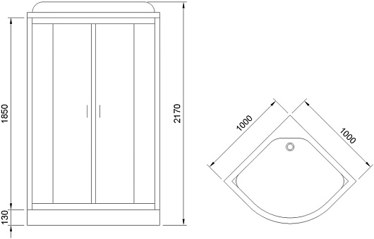 - Размер (ШxГxВ): 1000 x 1000 x 2170 мм.