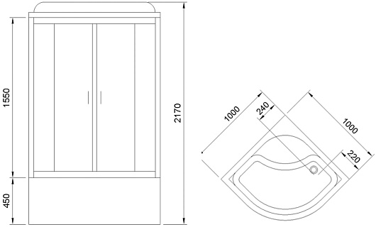 - Размер (ШxГxВ): 1000 x 1000 x 2170 мм.