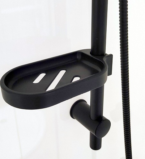 В комплекте: сифон, душевой набор с лейкой на гибком шланге, полочка с крючками, поддон с бортиком.