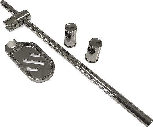 В комплекте: сифон, душевой набор с лейкой на гибком шланге, полочка с крючками, поддон с бортиком.