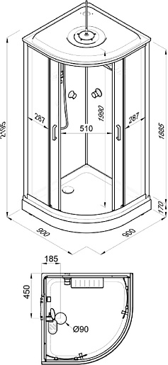 - Высота поддона: 17 см.