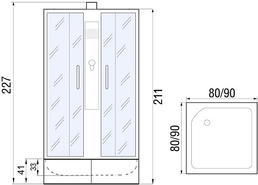 - Размер: 900x900x2300 мм.